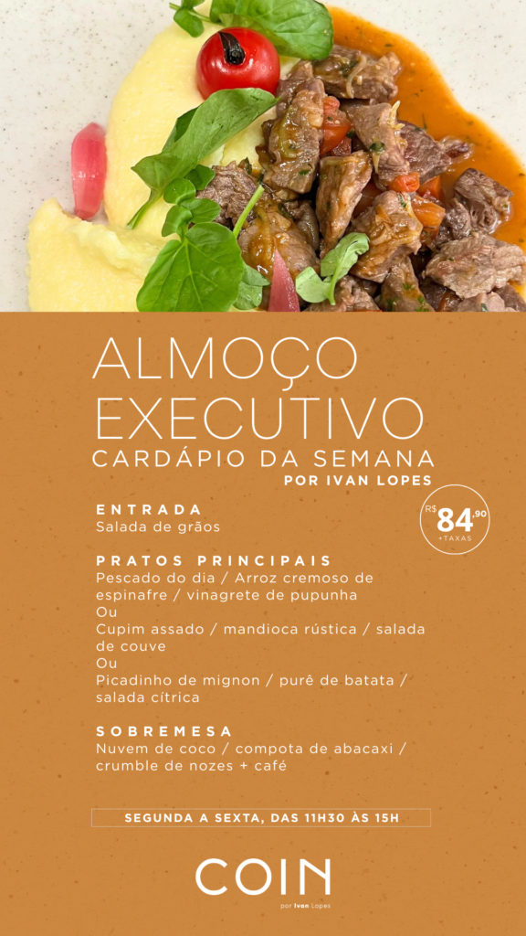 Mignon grelhado / demi-glace / risoto de funghi porcini ou fetuccine na manteiga trufada.